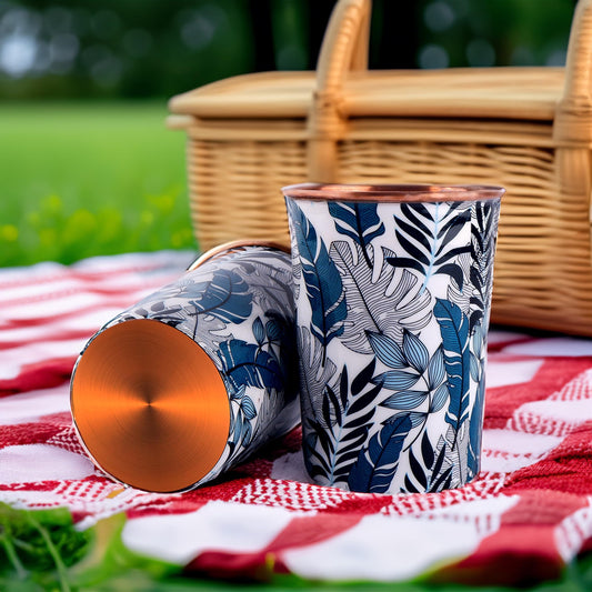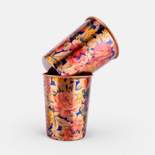 Exotic Elements Mīnākārī Art Designer Copper Tumblers | Immunity Booster, Protects Liver | Set of 2, 300ML each (Floral Sky)