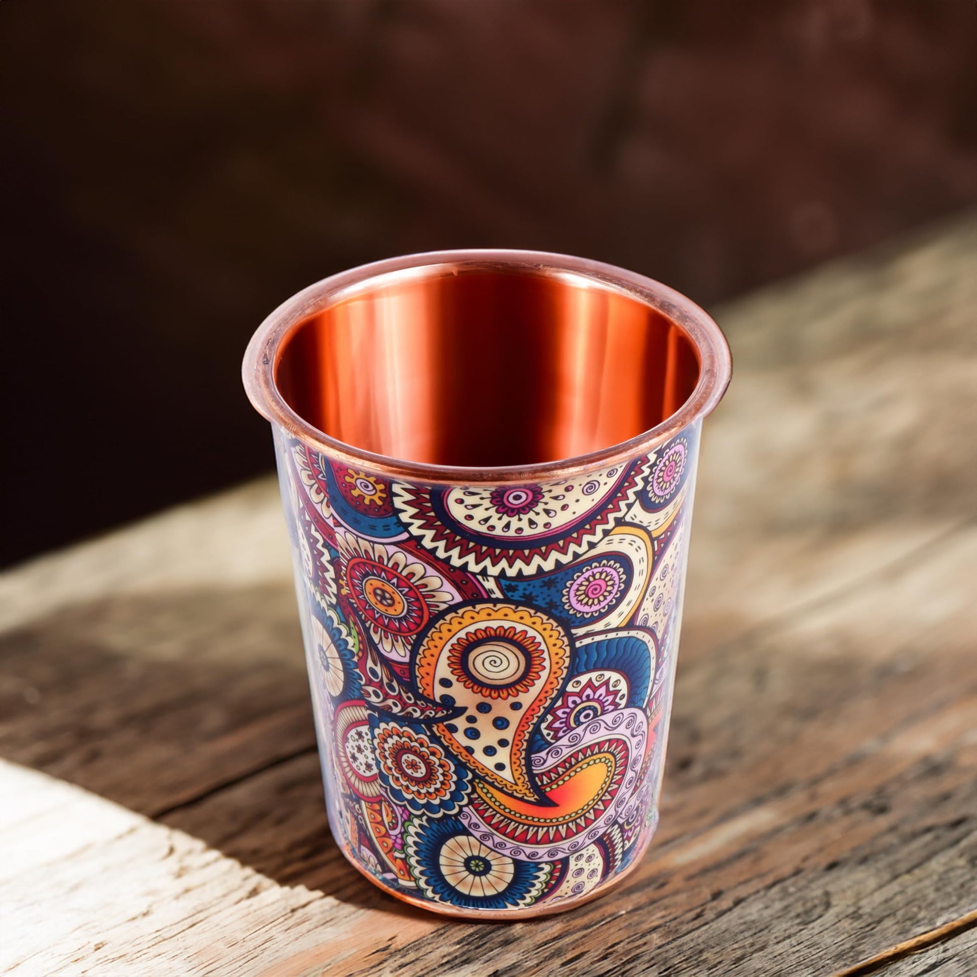 Exotic Elements Mīnākārī Art Designer Copper Tumblers | Immunity Booster, Protects Liver | Set of 2, 300ML each (Paisley Cream)